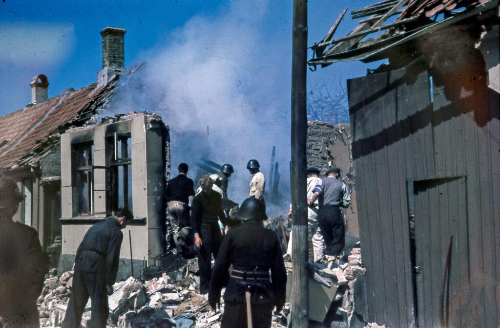 Oprydning i Rønne efter bombningen den 7. maj 1945